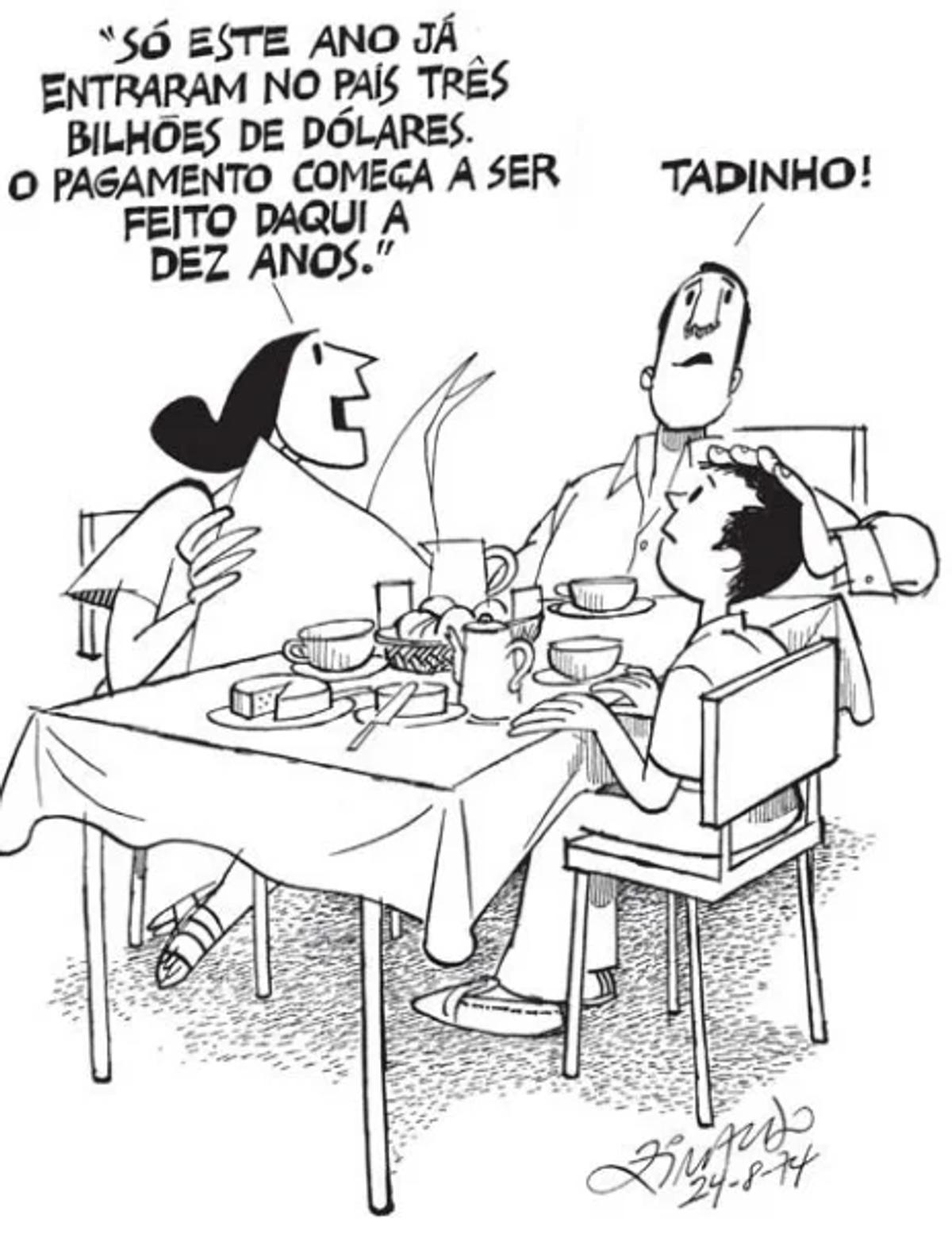 No período de 1964 a 1985, a estratégia do Regime Militar abordada na charge foi caracterizada pela