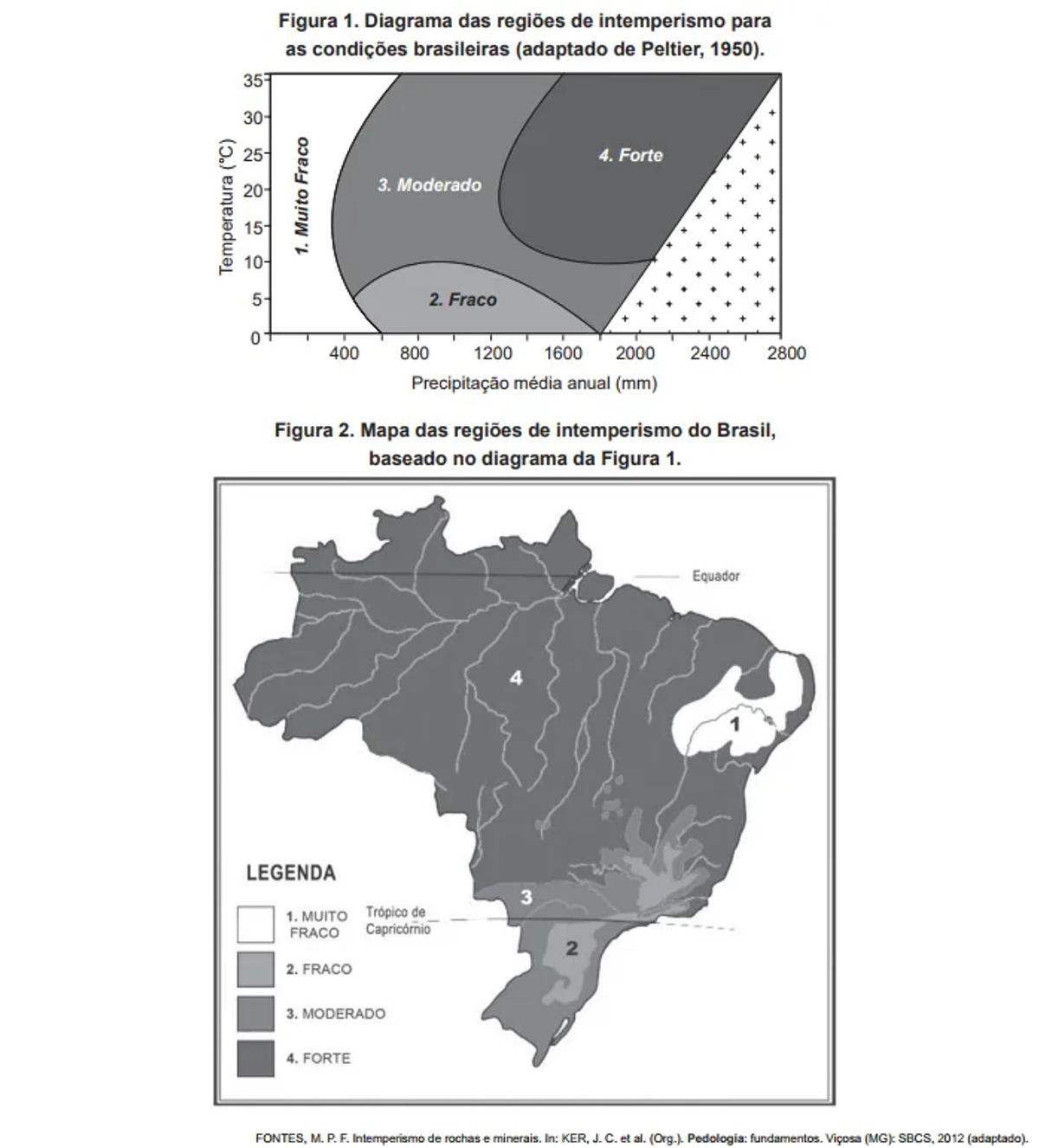 De acordo com as figuras, a intensidade de intemperismo de grau muito fraco é característica de qual tipo climático?