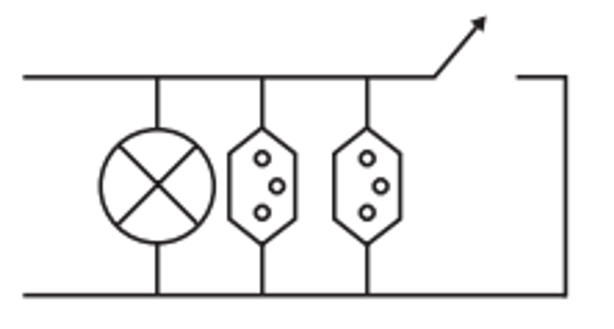 “O circuito deve ser tal que as tomadas e a lâmpada devem estar submetidas à tensão nominal da rede elétrica e a lâmpada deve poder ser ligada ou desligada por um interruptor sem afetar os outros dispositivos” – pensou.