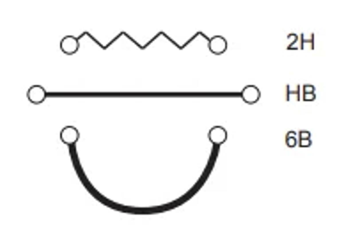 das linhas desenhadas, é possível determinar a resistência elétrica de cada traçado produzido. No esquema foram utilizados três tipos de lápis diferentes (2H, HB e 6B) para efetuar três traçados distintos.