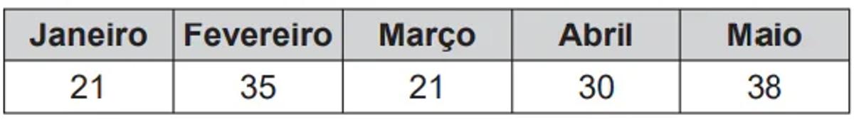 A permanência de um gerente em uma empresa está condicionada à sua produção no semestre. Essa produção é avaliada pela média do lucro mensal do semestre. Se a média for, no mínimo, de 30 mil reais, o gerente permanece no cargo, caso contrário, ele será despedido. O quadro mostra o lucro mensal, em milhares de reais, dessa empresa, de janeiro a maio do ano em curso.