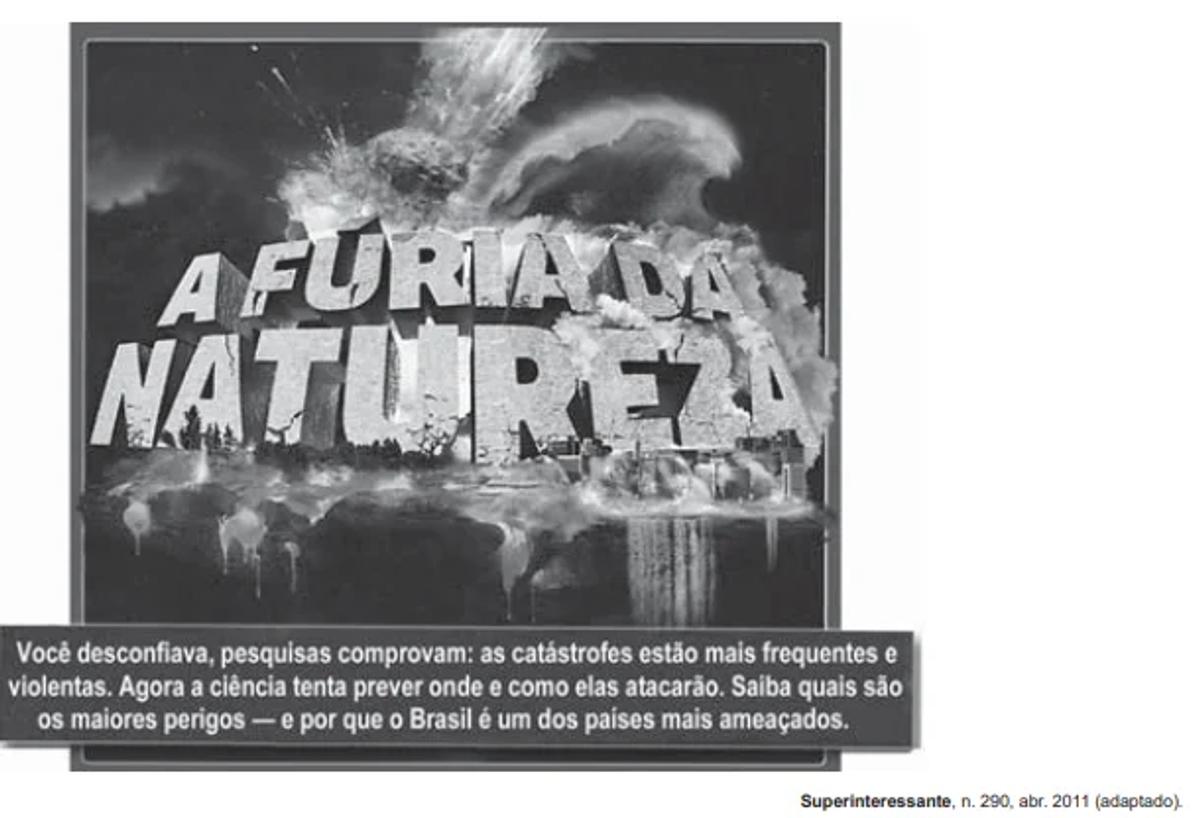 No processo de criação da capa de uma revista, é parte importante não só destacar o tema principal da edição, mas também captar a atenção do leitor. Com essa capa sobre os desastres naturais, desperta-se o interesse do leitor ao se apresentar uma ilustração com impacto visual e uma parte verbal que agrega ao texto um caráter