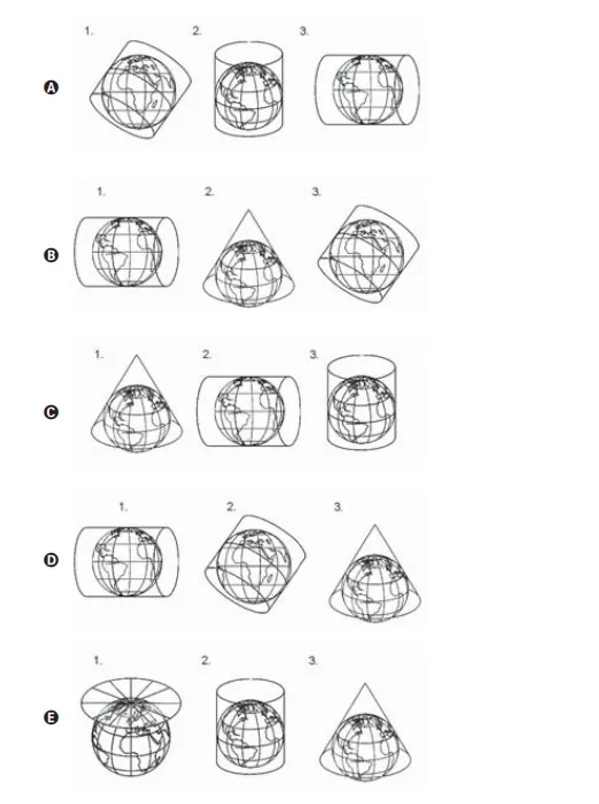 As relações do plano de projeção à superfície projetada mostradas nas figuras são identificadas, respectivamente, em: