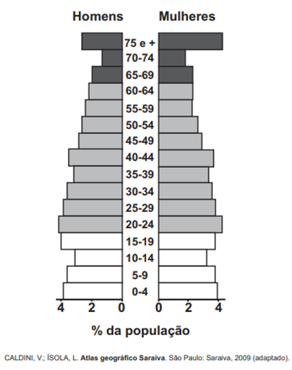 O padrão da pirâmide etária ilustrada apresenta demanda de investimentos socioeconômicos para a