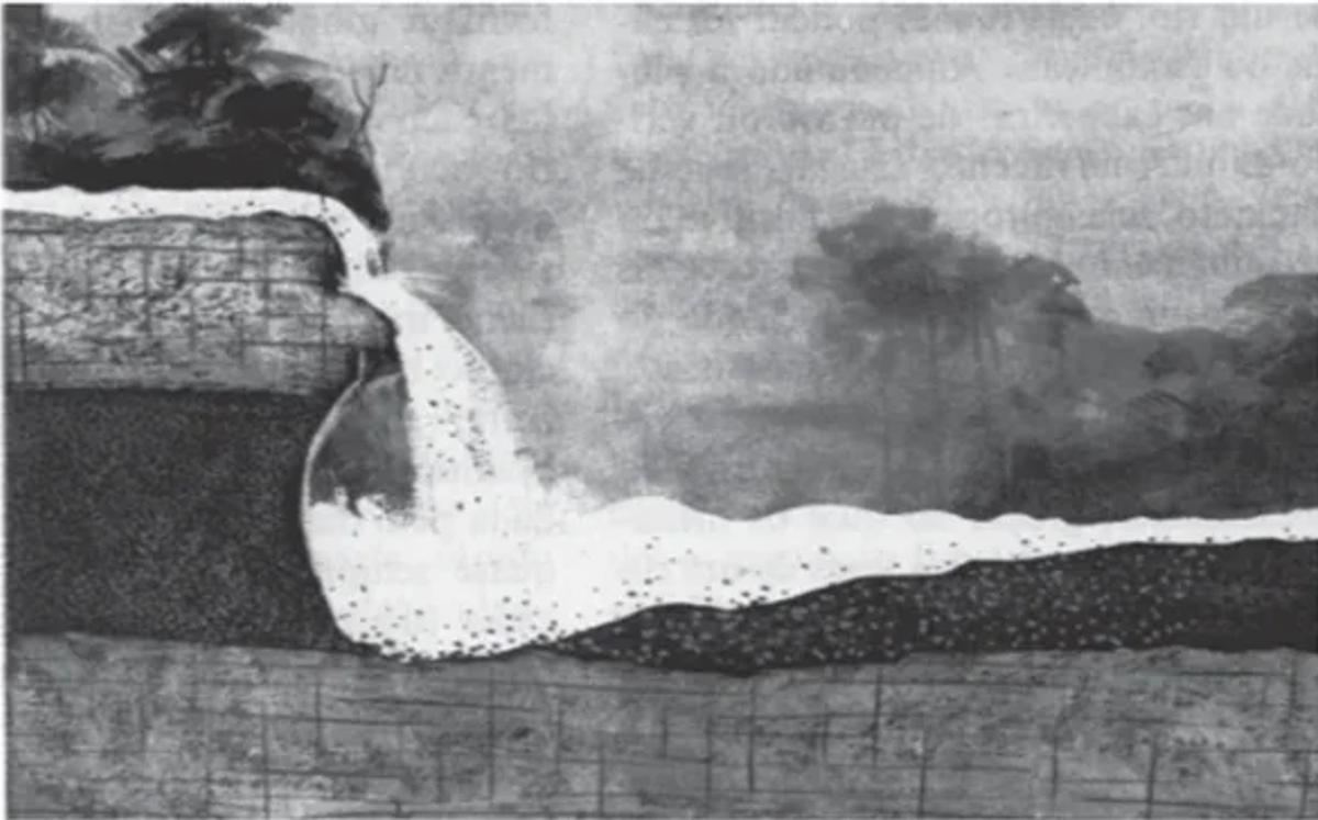 A causa da formação do curso-d’água encachoeirado, tal como ilustrado na imagem, é a