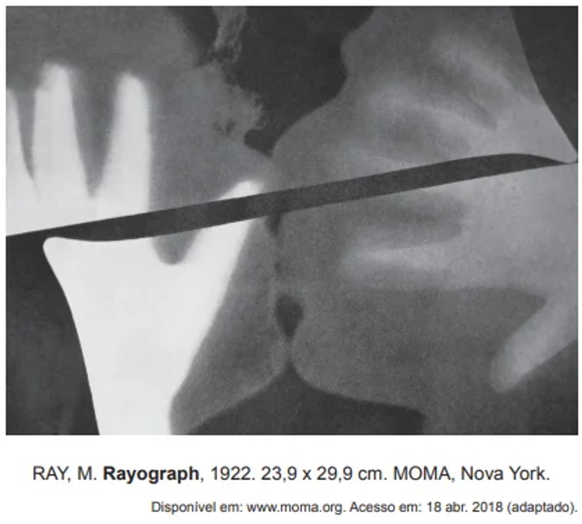 No fotograma de Man Ray, o “distanciamento da representação figurativa” a que se refere o Texto I manifesta-se na