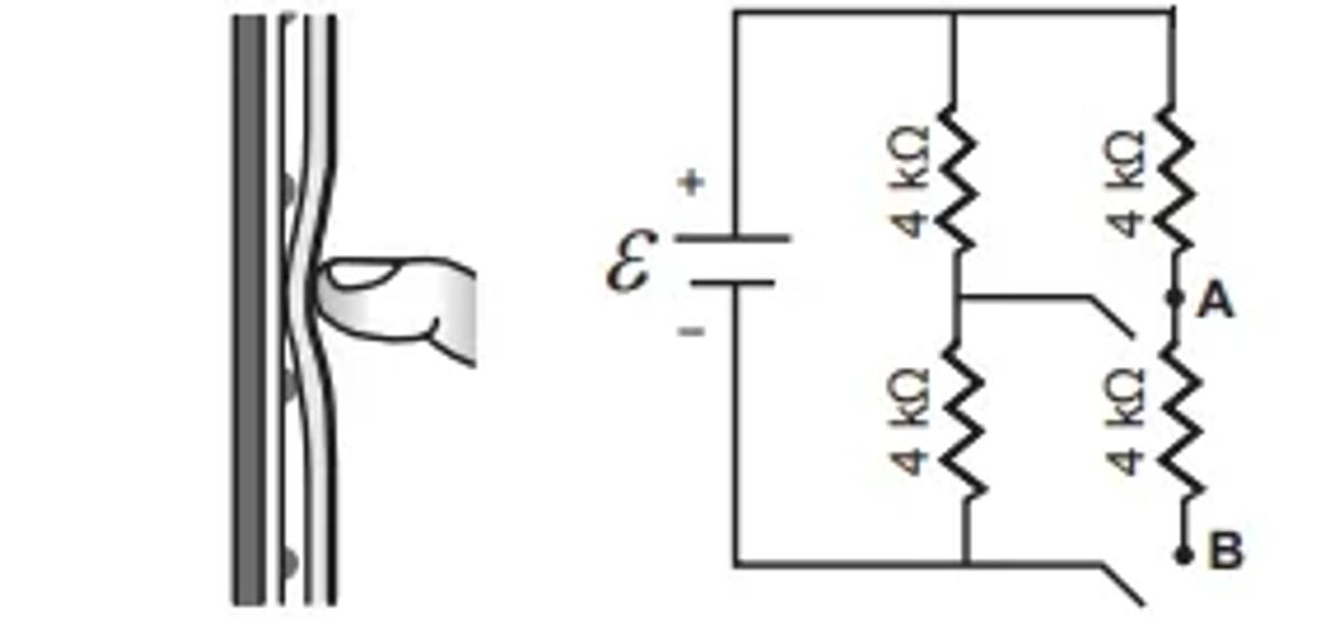Muitos smartphones e tablets não precisam mais de teclas, uma vez que todos os comandos podem ser dados ao se pressionar a própria tela. Inicialmente essa tecnologia foi proporcionada por meio das telas resistivas, formadas basicamente por duas camadas de material condutor transparente que não se encostam até que alguém as pressione, modificando a resistência total do circuito de acordo com o ponto onde ocorre o toque. A imagem é uma simplificação do circuito formado pelas placas, em que A e B representam pontos onde o circuito pode ser fechado por meio do toque.