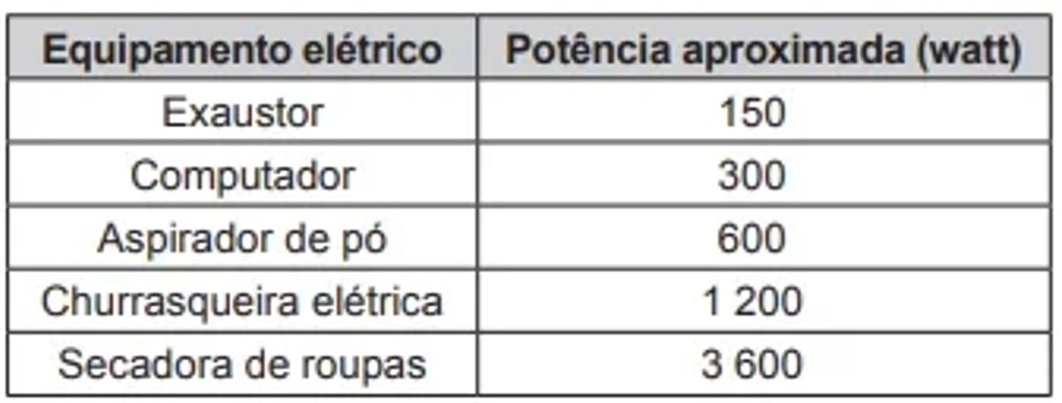 Alguns peixes, como o poraquê, a enguia-elétrica da Amazônia, podem produzir uma corrente elétrica quando se encontram em perigo. Um poraquê de 1 metro de comprimento, em perigo, produz uma corrente em torno de 2 ampères e uma voltagem de 600 volts. O quadro apresenta a potência aproximada de equipamentos elétricos.