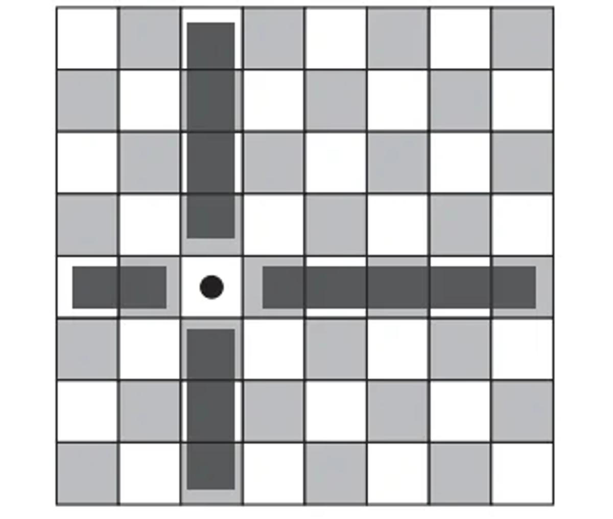 de combate dessa peça. Na figura está ilustrada a zona de combate de uma peça colocada em uma das casas de