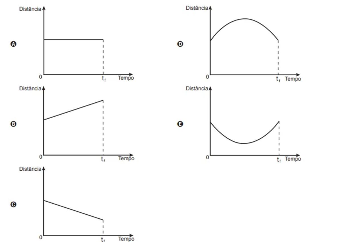 O gráfico que descreve a distância do ponto M ao ponto O, em função do tempo, entre t = 0 e tf é