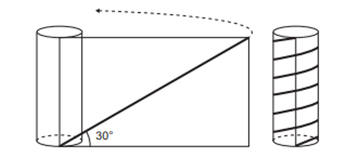 desenhada em negrito uma diagonal que forma 30° com a borda inferior. O raio da base do cilindro mede