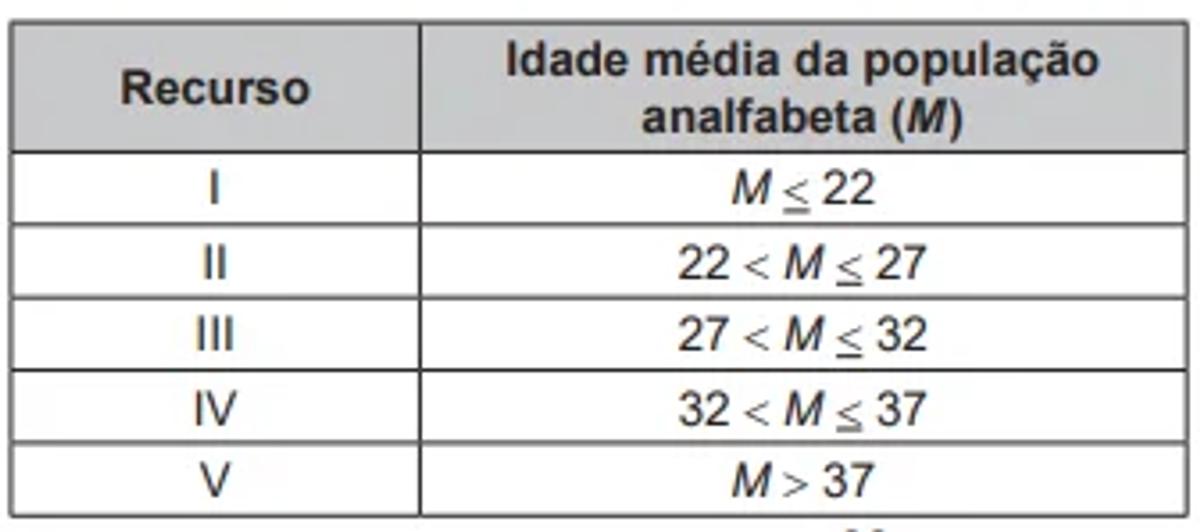 Considerando a média de idade da população analfabeta dessa cidade, ela receberá o recurso