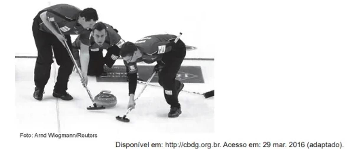 O curling é um dos esportes de inverno mais antigos e tradicionais. No jogo, dois times com quatro pessoas têm de deslizar pedras de granito sobre uma área marcada de gelo e tentar colocá-las o mais próximo possível do centro. A pista de curling é feita para ser o mais nivelada possível, para não interferir no decorrer do jogo. Após o lançamento, membros da equipe varrem (com vassouras especiais) o gelo imediatamente à frente da pedra, porém sem tocá-la. Isso é fundamental para o decorrer da partida, pois influi diretamente na distância percorrida e na direção do movimento da pedra. Em um lançamento retilíneo, sem a interferência dos varredores, verifica-se que o módulo da desaceleração da pedra é superior se comparado à desaceleração da mesma pedra lançada com a ação dos varredores.
