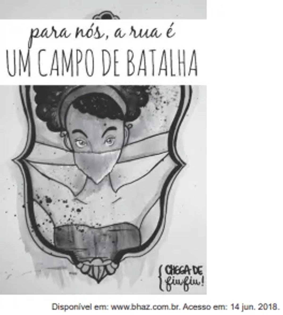 Essa campanha de conscientização sobre o assédio sofrido pelas mulheres nas ruas constrói-se pela combinação da linguagem verbal e não verbal. A imagem da mulher com o nariz e a boca cobertos por um lenço é a representação não verbal do(a)