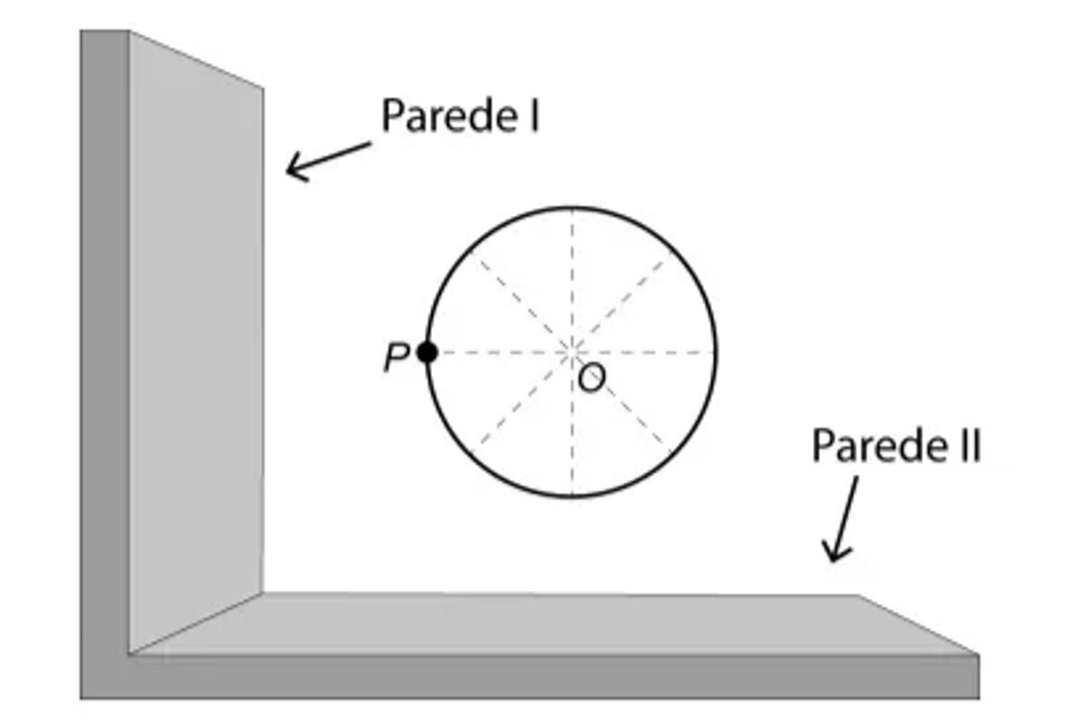 O brinquedo está situado nas proximidades de duas paredes verticais e perpendiculares entre si. Seja D a distância de P até a parede I.