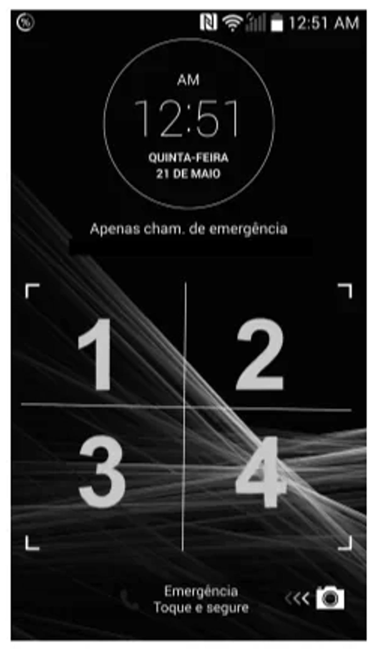 Um modelo de telefone celular oferece a opção de desbloquear a tela usando um padrão de toques como senha.
