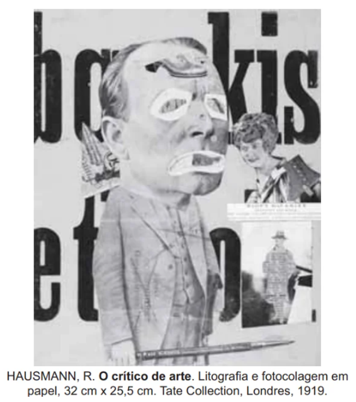 Produzida em 1919, a obra O crítico de arte, de Hausmann, utiliza procedimentos de composição que revelam a: