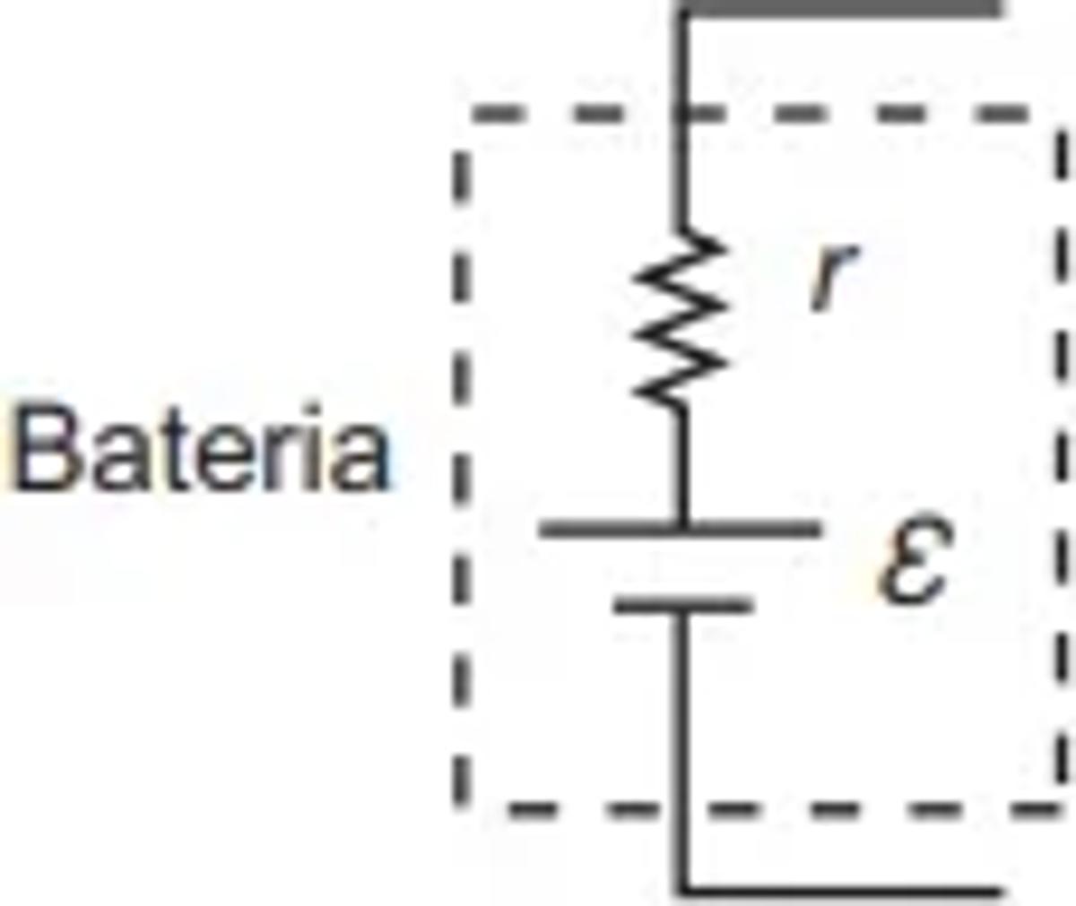 Baterias são dispositivos que acumulam energia e estão presentes em inúmeros aparelhos portáteis. Uma bateria ideal não possui resistência interna. Entretanto, baterias reais apresentam resistência interna disponibilizando uma tensão efetiva V inferior à sua tensão nominal E, conforme a figura. Uma vez que se sabe o valor da tensão nominal da bateria, determina-se sua carga pelo conhecimento da corrente / enquanto está conectada a um circuito de resistência R, de tensão efetiva V, e da resistência interna da bateria.