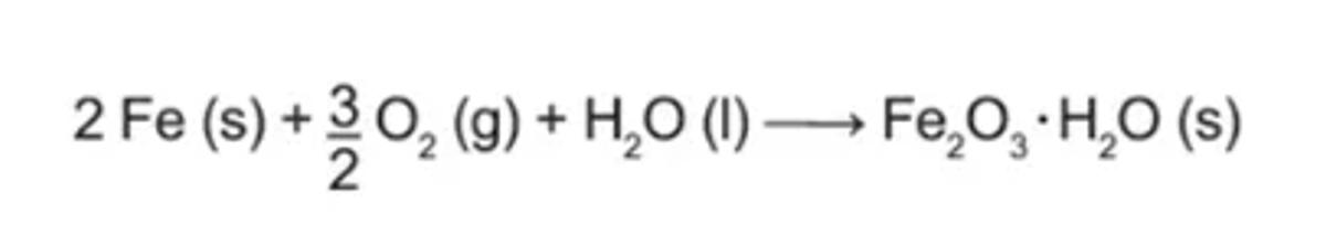 Um marceneiro esqueceu um pacote de pregos ao relento, expostos à umidade do ar e à chuva. Com isso, os pregos de ferro, que tinham a massa de 5,6 g cada, acabaram cobertos por uma camada espessa de ferrugem (Fe₂O₃⋅H₂O), uma substância marrom insolúvel, produto da oxidação do ferro metálico, que ocorre segundo a equação química: