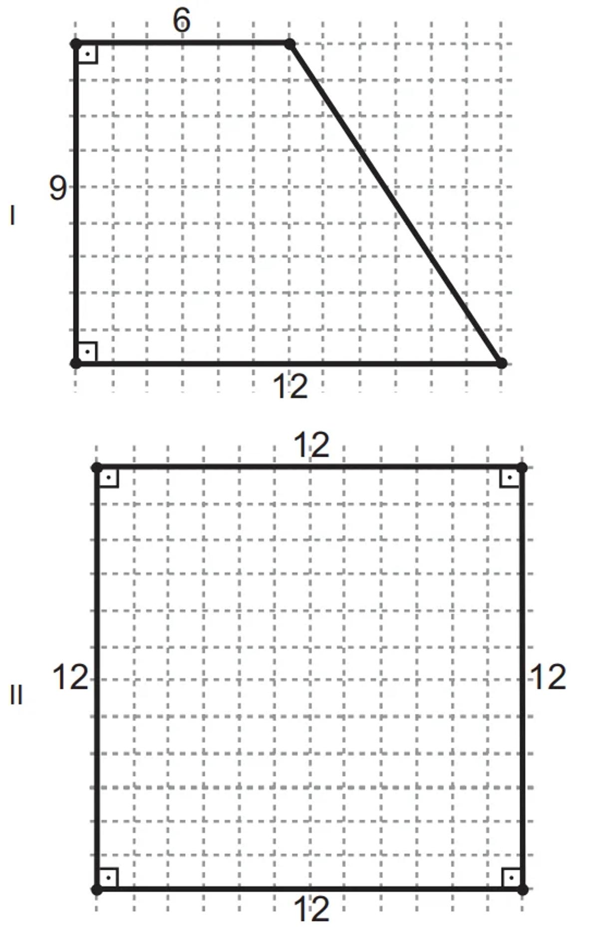 Um suporte será instalado no box de um banheiro para serem colocados recipientes de xampu, condicionador e sabonete líquido, sendo que o recipiente de cada produto tem a forma de um cilindro circular reto de medida do raio igual a 3 cm. Para maior conforto no interior do box, a proprietária do apartamento decidiu comprar o suporte que tiver a base de menor área, desde que a base de cada recipiente ficasse inteiramente sobre o suporte. Nas figuras, vemos as bases desses suportes, nas quais todas as medidas indicadas estão em centímetro.