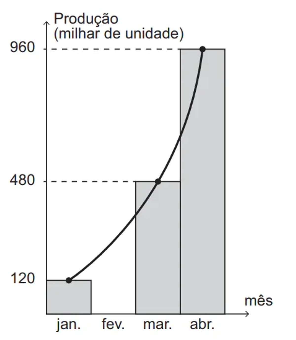 Assumindo a premissa de que o crescimento nesse período foi exponencial, pode-se inferir que a produção dessa indústria no mês de fevereiro, em milhar de unidade, foi