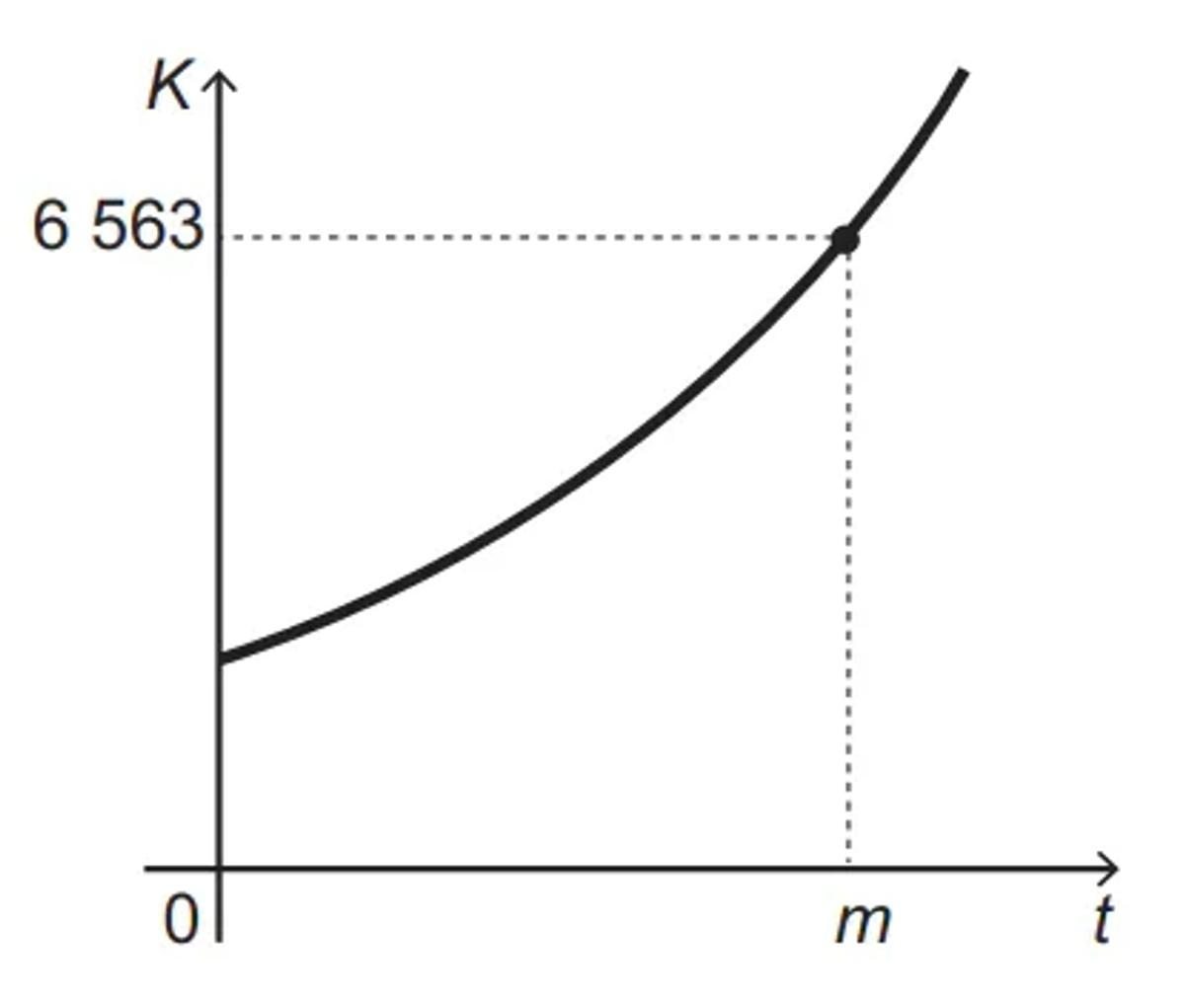 O crescimento de uma população de microrganismos é descrito pela expressão K(t) = 81.3t/3 + 2, em que K(t) indica a quantidade de microrganismos em um meio de cultura em função do tempo t. O gráfico representa a evolução de K em relação ao tempo t.