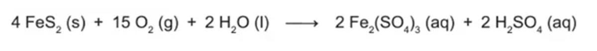 A presença de substâncias ricas em enxofre em áreas de mineração provoca preocupantes impactos ambientais. Um exemplo dessas substâncias é a pirita (FeS2), que, em contato com o oxigênio atmosférico, reage formando uma solução aquosa ferruginosa, conhecida como drenagem ácida de minas, segundo a equação química: