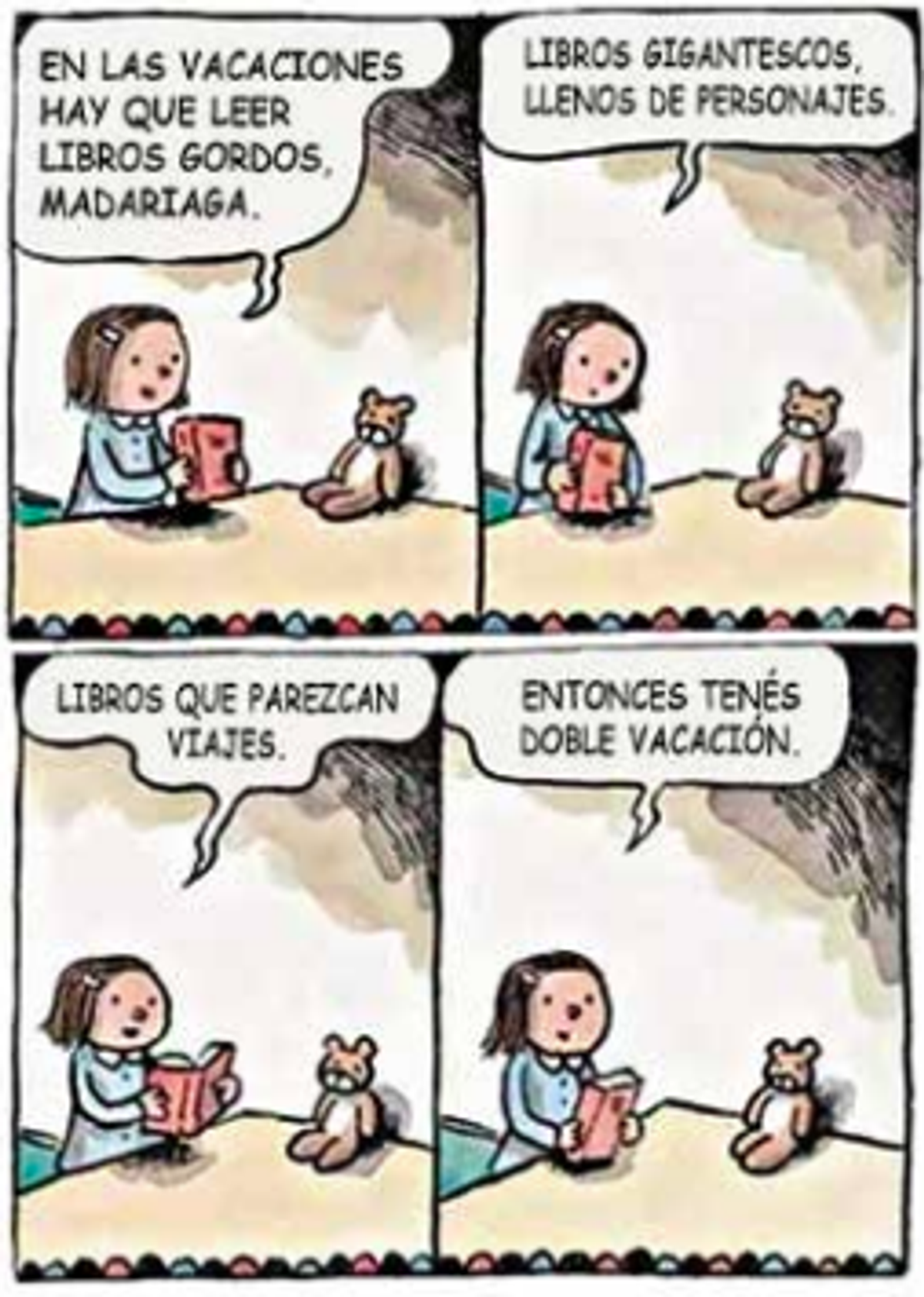 BlogProvasENEM 2023 PPLQuestão 3EspanholLíngua EspanholaMédioQuestão 3 — ENEM 2023 PPLLINIERS, R. S. Disponível em: https://muhimu.es. Acesso em: 15 out. 2021.Nessa tirinha, ao utilizar a expressão "doble vacación", a protagonista conclui queAlternativasAenredos muito extensos são desafiadores.Bobras com muitos personagens são instigantes.Cnarrativas sobre viagens são mais interessantes.Dlivros de conteúdo mais denso estão presentes na vida dos jovens.Eleituras diversificadas são um convite a conhecer outras realidades.Ver GabaritoResoluçãoResolução em breve.Questão 2Questão 4