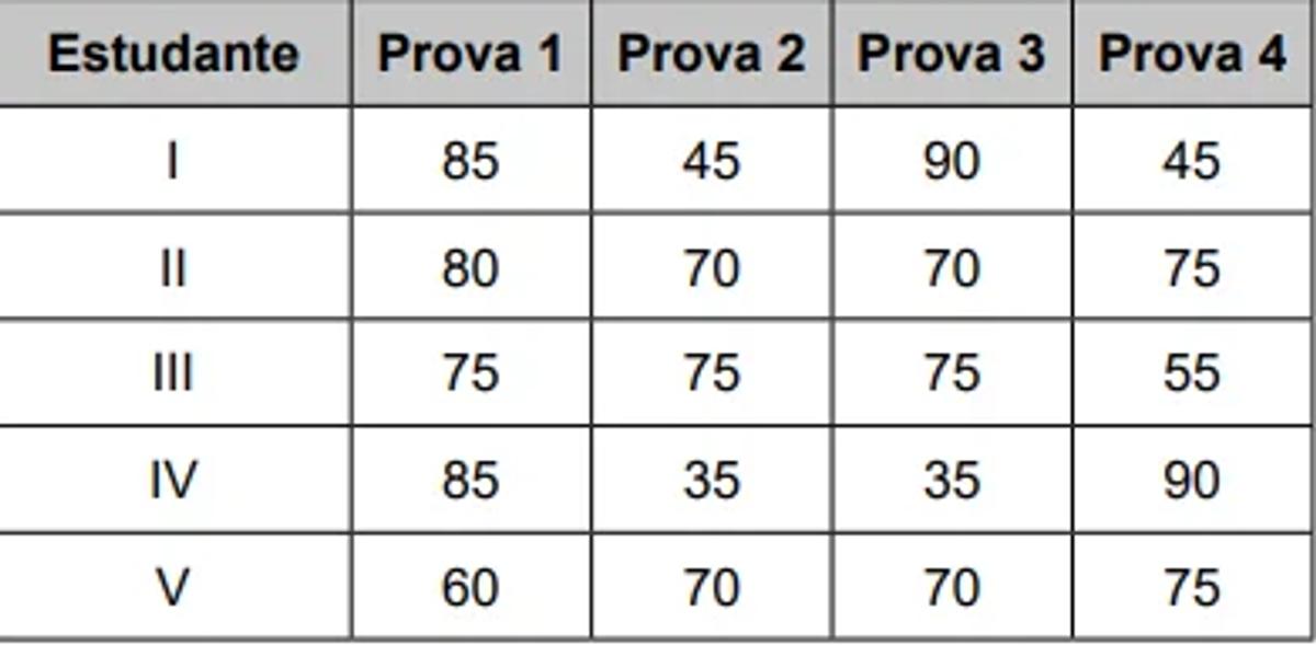 Cinco estudantes dessa disciplina obtiveram as notas apresentadas no quadro.