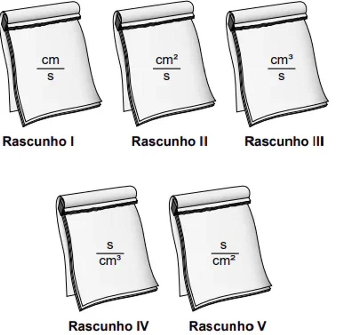 Um técnico rascunhou cinco possibilidades de unidade de medida para a grandeza que esse equipamento monitora. Nas imagens, cm significa centímetro, e s significa segundo.