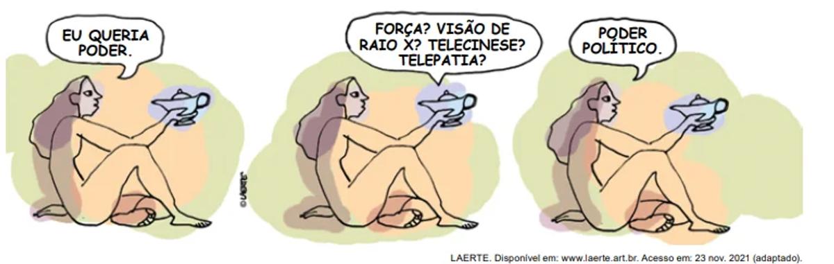 A charge ilustra um anseio presente na sociedade contemporânea, que se caracteriza pela