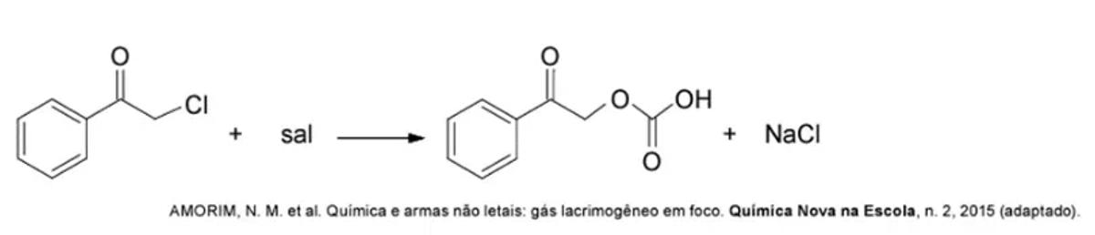 Os agentes lacrimogêneos são espécies químicas capazes de provocar forte irritação das vias aéreas superiores e dos olhos. Até o final da década de 1960, a cloroacetofenona (CA) foi a substância mais utilizada com essa finalidade. Uma forma de descontaminar a pele exposta à CA consiste em lavá-la com uma solução aquosa de determinado sal, o qual reagirá com a CA, conforme a reação representada.