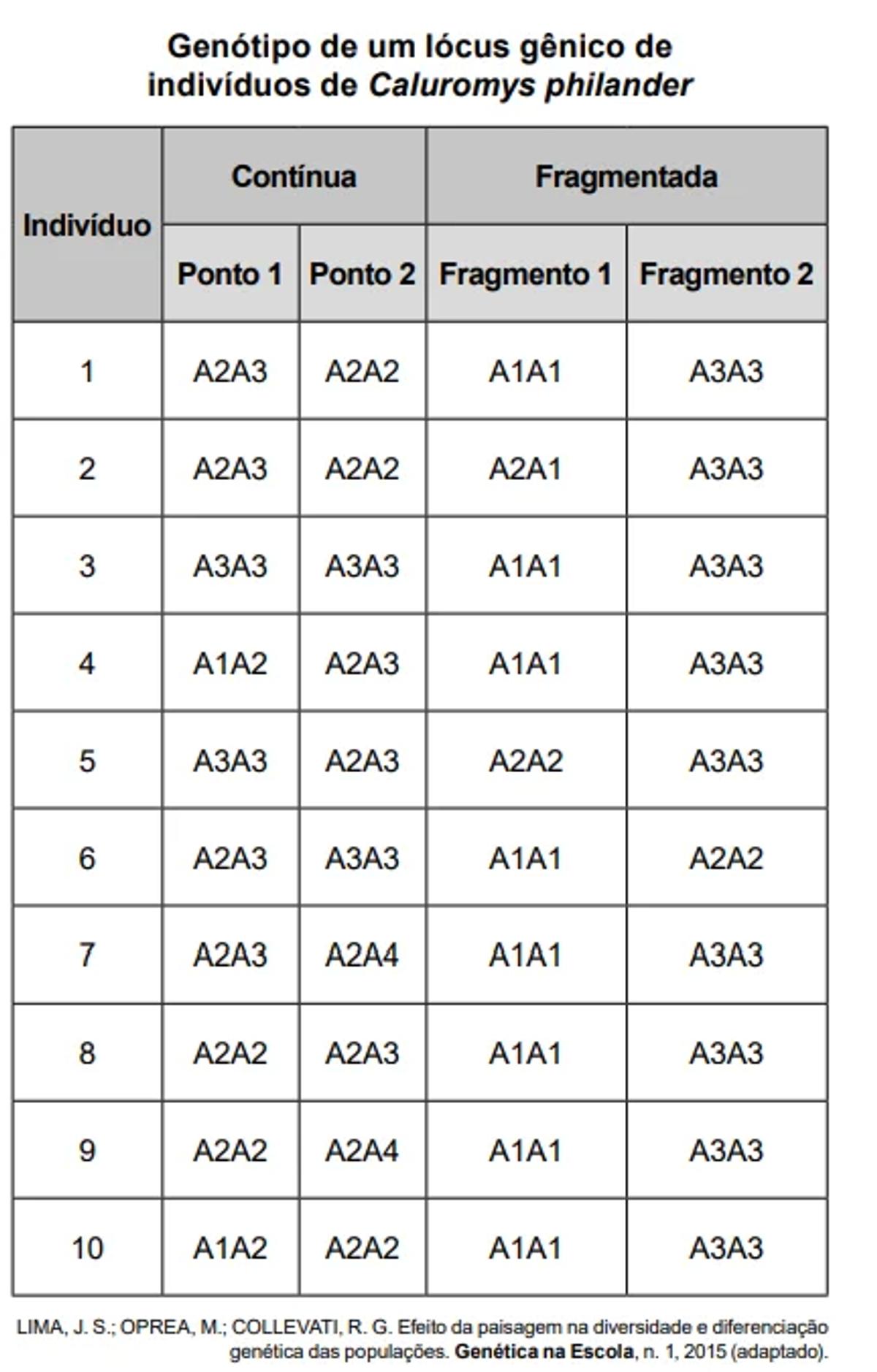 Coletaram amostras de tecidos de dez indivíduos em cada paisagem e extraíram o DNA, verificando a variabilidade genética, como apresentado no quadro.