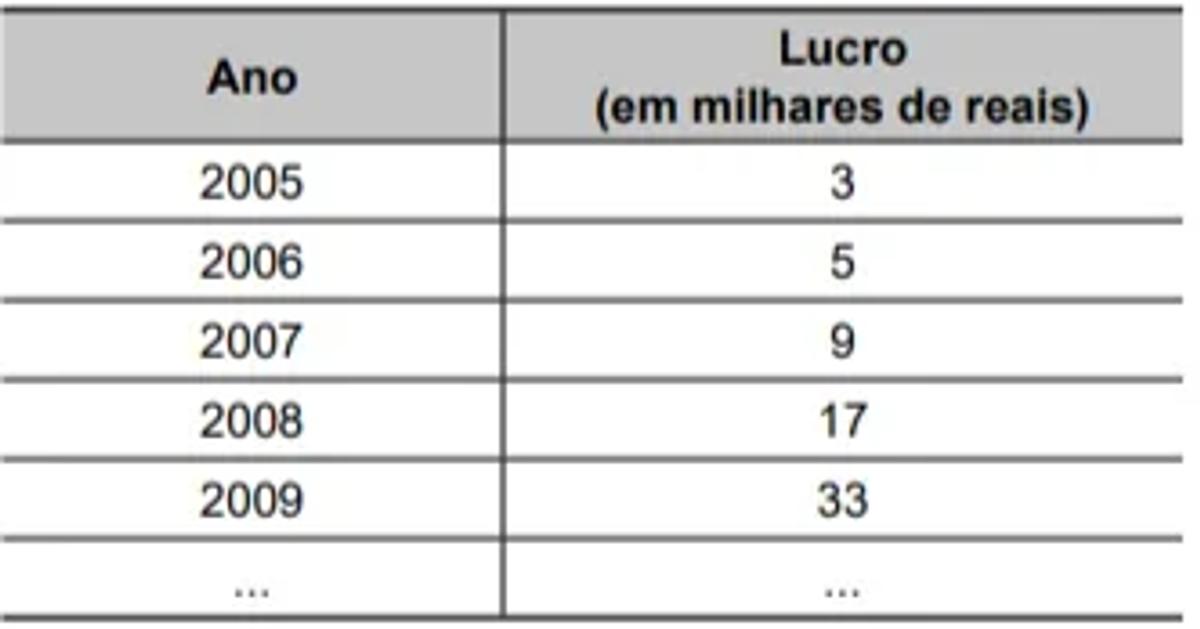 Supondo que se tenha mantido o padrão observado na tabela para os 5 anos seguintes, estima-se que o lucro total dessa empresa, de 2005 a 2014, em milhar de real, foi