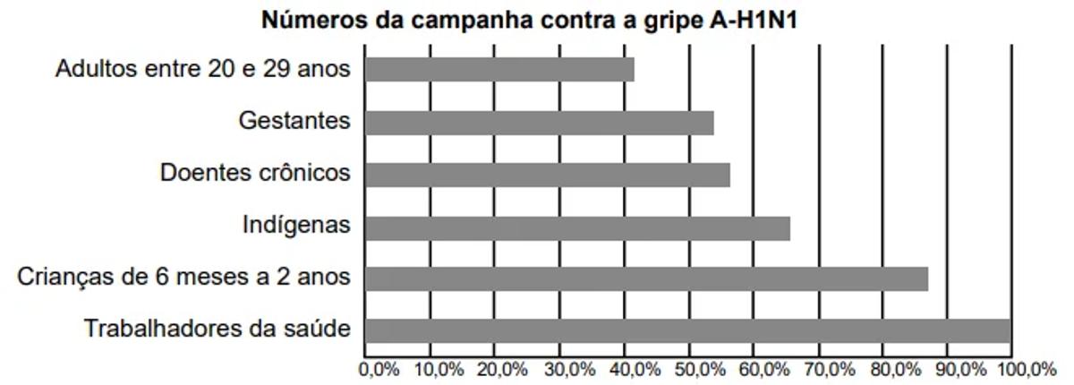 O gráfico expõe alguns números da gripe A-H1N1. Entre as categorias que estão em processo de imunização, uma já está completamente imunizada, a dos trabalhadores da saúde.