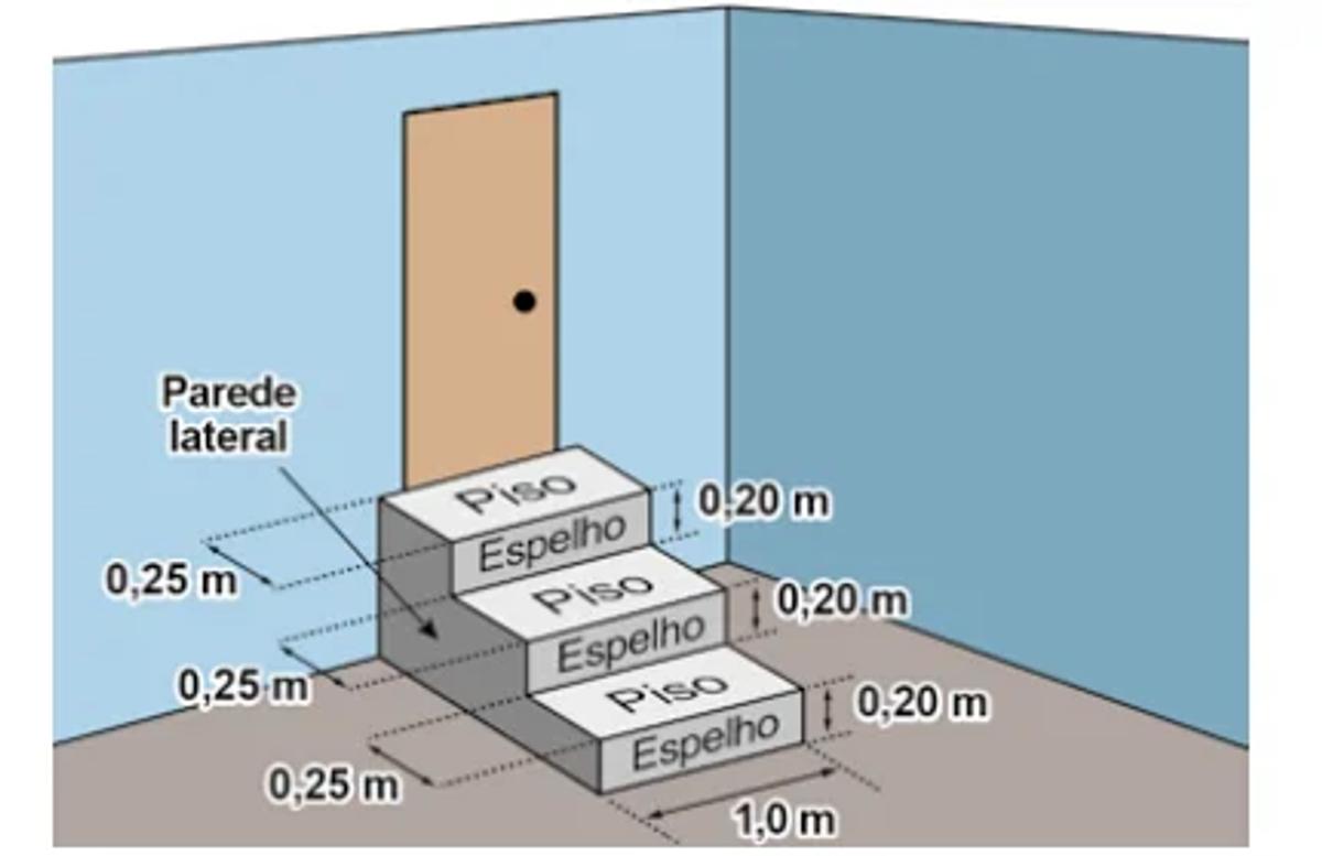 A figura representa uma escada com três degraus, construída em concreto maciço, com suas medidas especificadas.