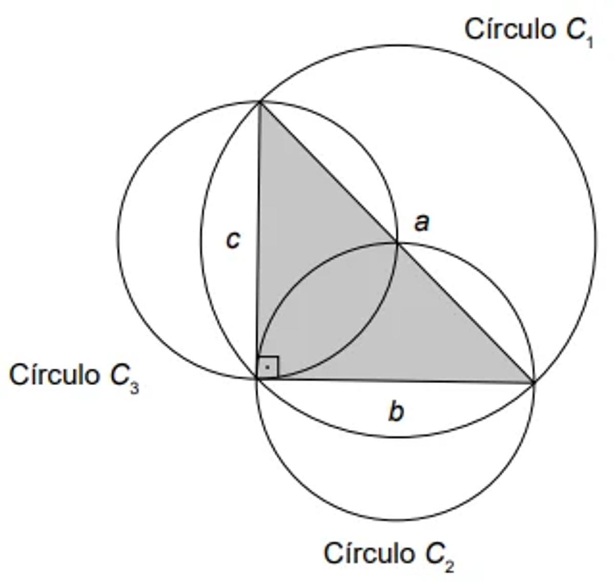 Observe que essa construção assegura, pelo teorema de Pitágoras, que área (C1) = área (C2) + área (C3).