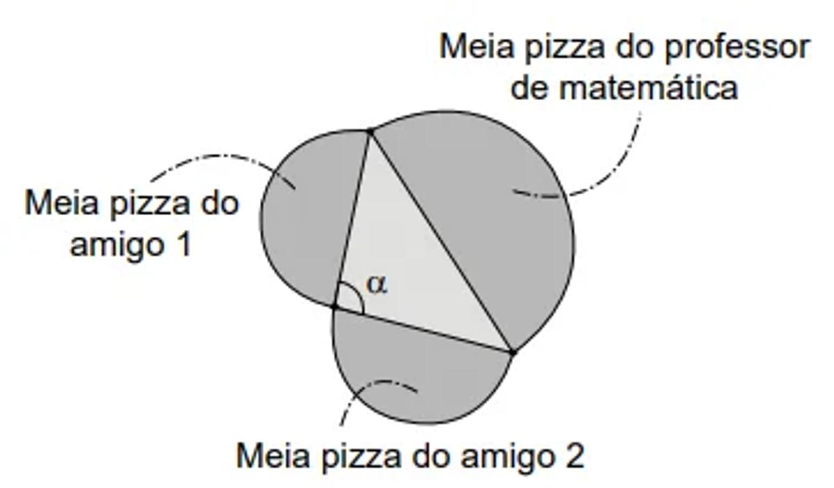 A partir da medida do ângulo a, o professor afirmou que a área de sua pizza é maior do que a soma das áreas das outras duas pizzas.