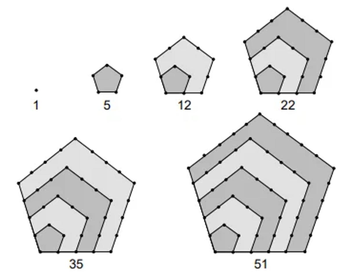 Os números figurados pentagonais provavelmente foram introduzidos pelos pitagóricos por volta do