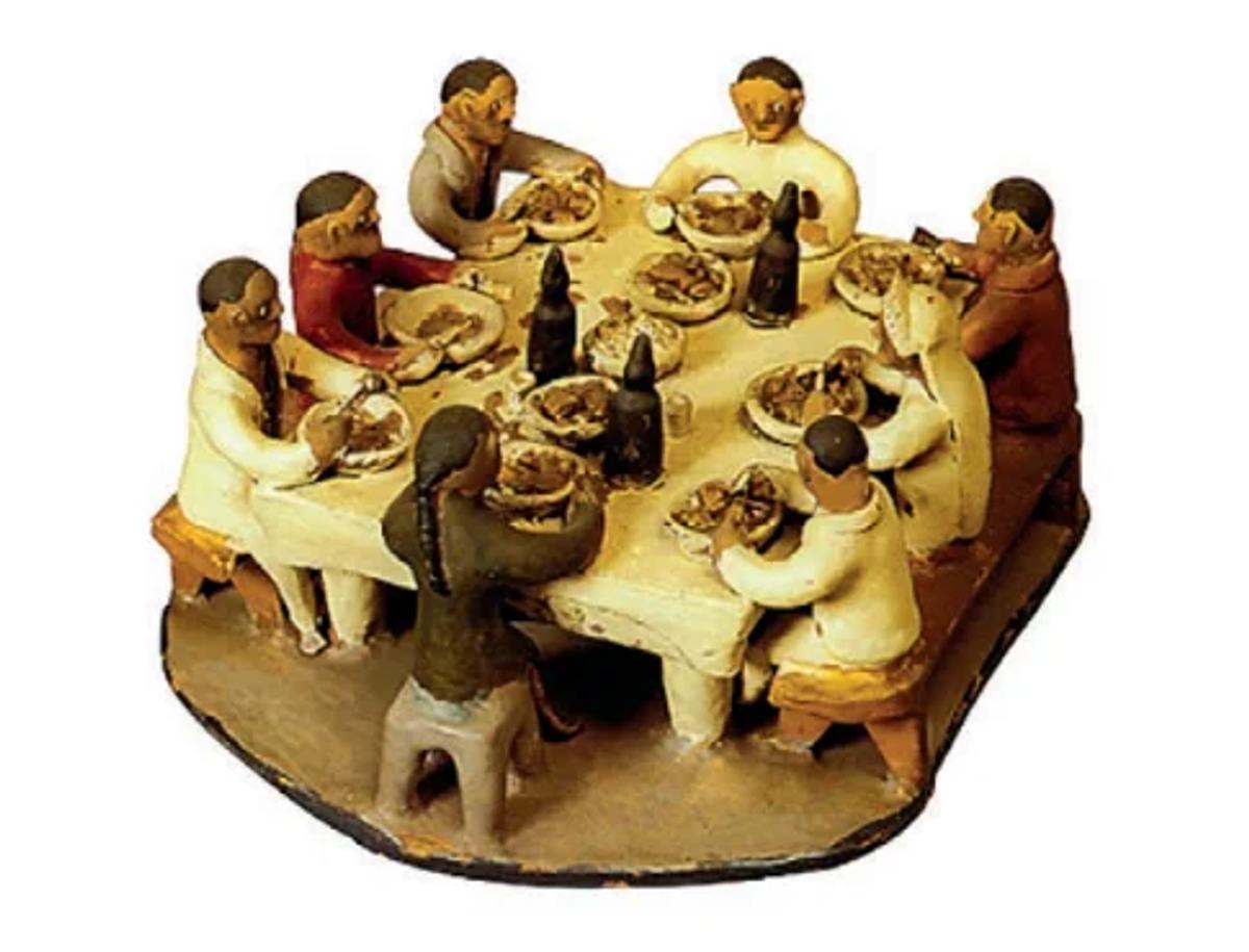 Mestre Vitalino, importante ceramista popular brasileiro, na obra reproduzida, retrata uma cena típica da cultura nordestina: o horário da refeição.