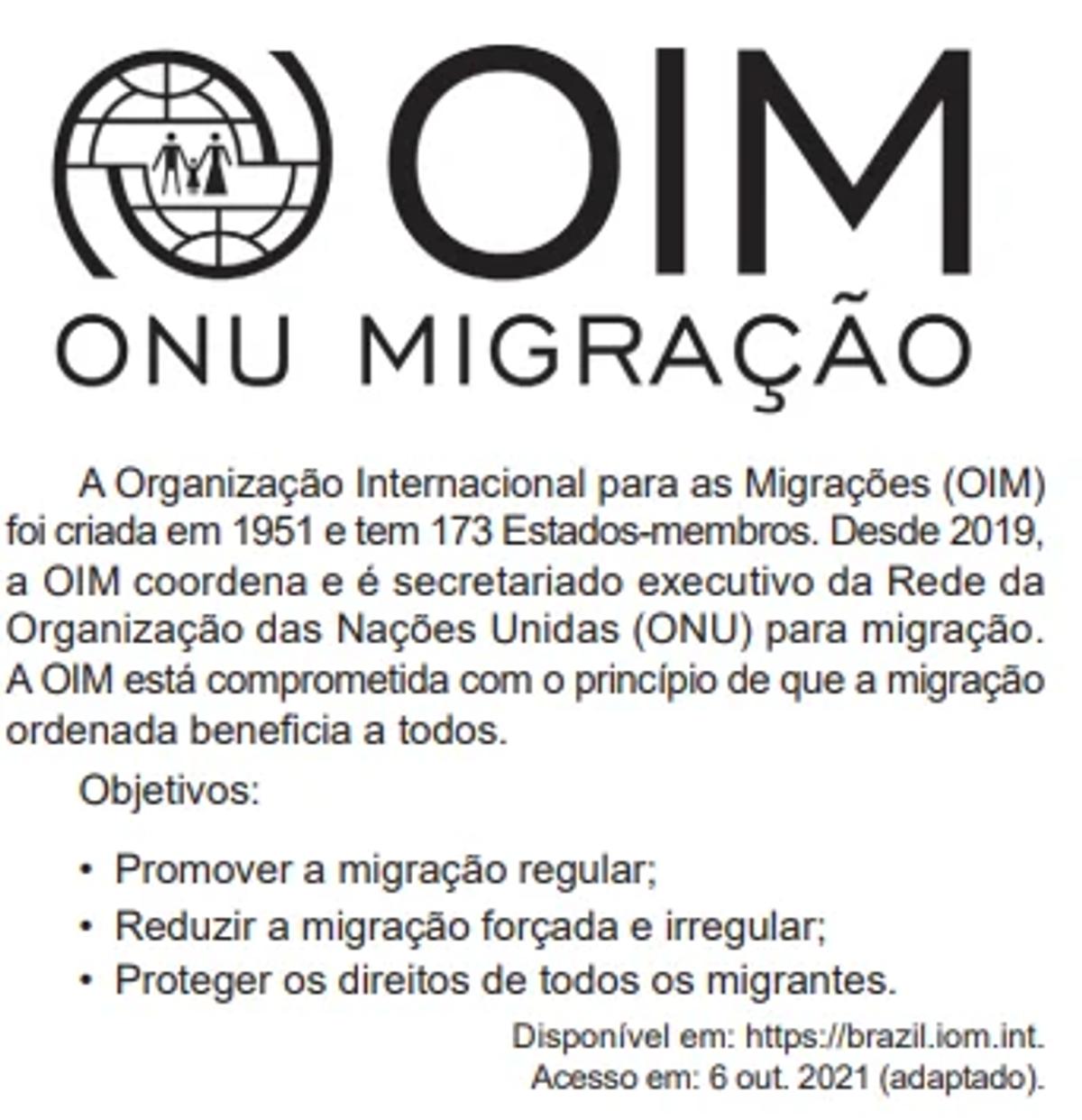 A relação da OIM com uma organização mais abrangente, como apresentada no texto, resulta do(a)