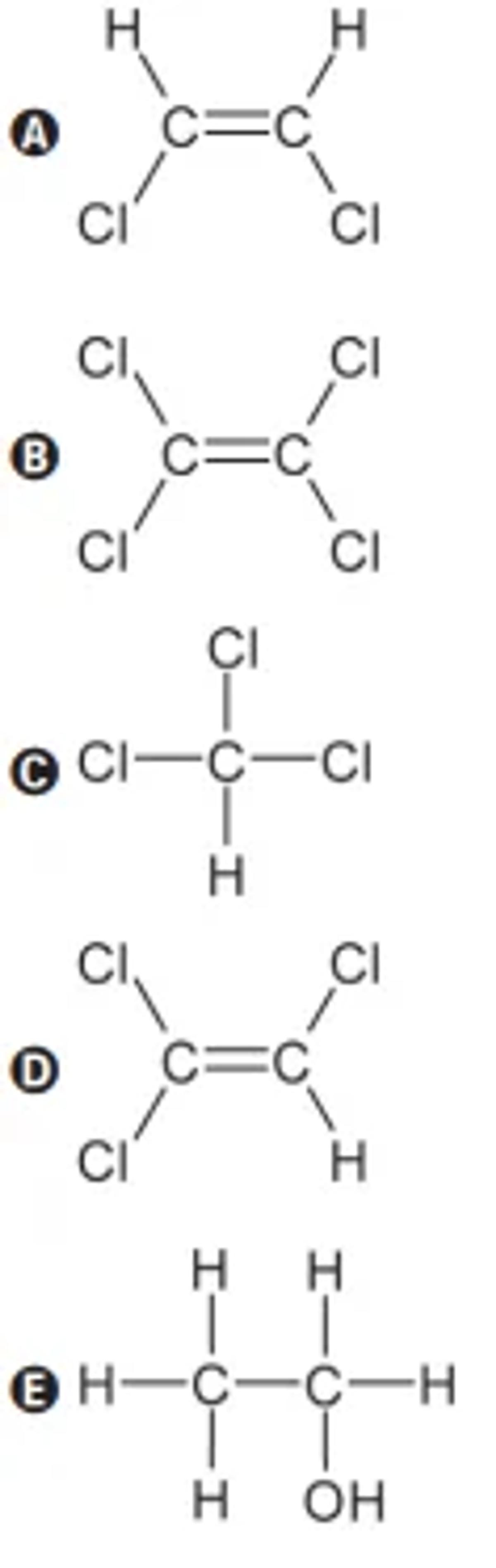 Qual estrutura molecular representa o solvente mais efetivo na lavagem a seco de roupas?