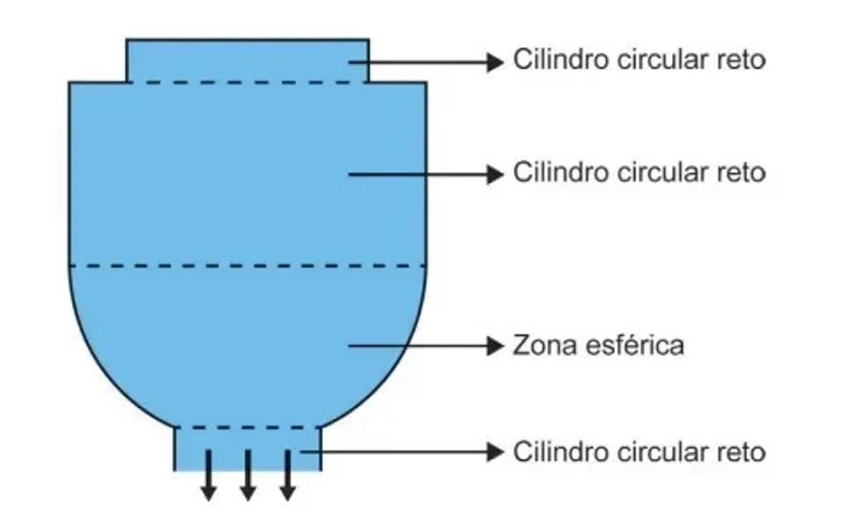 Um garrafão, cujas seções transversais são circunferências, encontra-se cheio de água. Ao ser acoplado a um bebedouro, ficou com sua base voltada para cima e paralela ao chão. A torneira desse bebedouro foi aberta para escoar toda a água desse garrafão com vazão constante. A vista frontal do garrafão é apresentada na figura.