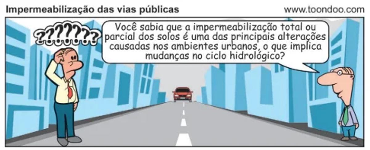 Nas últimas décadas, a população dos centros urbanos tem requerido a pavimentação das vias públicas, visando o aumento do conforto e a minimização do desgaste de veículos. No entanto, essa melhoria da qualidade de vida pode trazer implicações ao meio ambiente. A impermeabilização impede a infiltração de água no solo, sendo carreados, portanto, todos os dejetos e impurezas para os cursos de água.