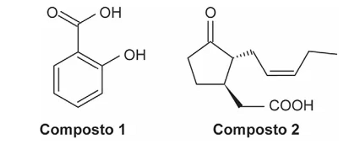 Os pesticidas naturais vêm sendo utilizados no controle de pragas e doenças agrícolas como substituintes de pesticidas sintéticos tradicionais, por serem menos nocivos ao ambiente, biodegradáveis e minimizarem custos e riscos relativos à lavoura. Por exemplo, os compostos 1 e 2 estão envolvidos nas respostas de defesa das plantas. Os grupos funcionais presentes nesses compostos são importantes para suas propriedades no controle de pragas.