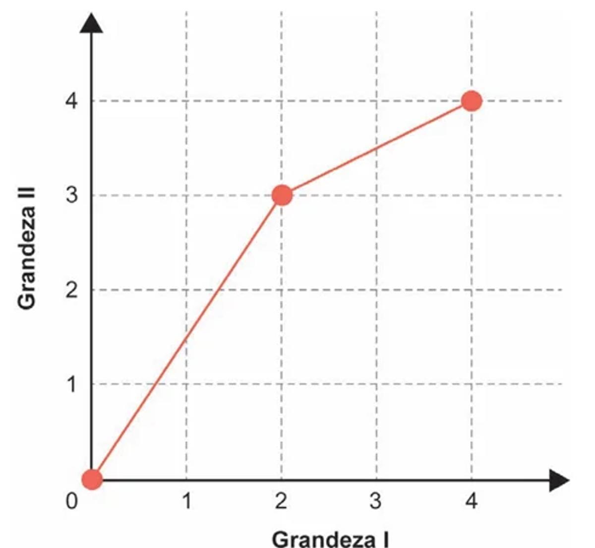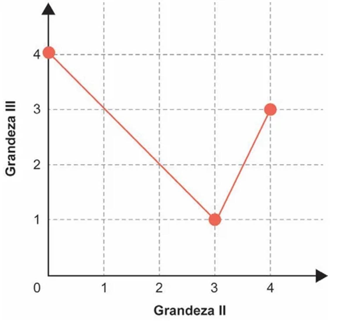 Três grandezas (I, II e III) se relacionam entre si. Os gráficos a seguir, formados por segmentos de reta, descrevem as relações de dependência existentes entre as grandezas I e II, e entre as grandezas II e III.