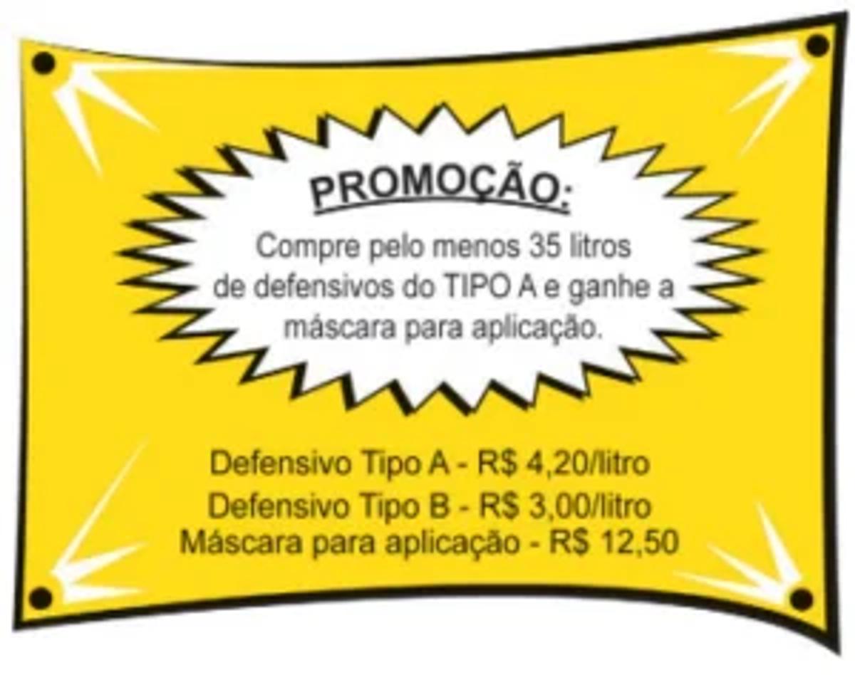 Sabe-se que 1 litro de defensivo do Tipo A é suficiente para aplicação em 0,5 hectare (ha), enquanto que 1 litro de defensivo do Tipo B é suficiente para aplicação em 0,4 ha. Um agricultor precisa comprar, nessa loja, uma quantidade de litros de defensivo suficiente para aplicar em uma área de 20 ha, além de levar uma máscara para aplicação.