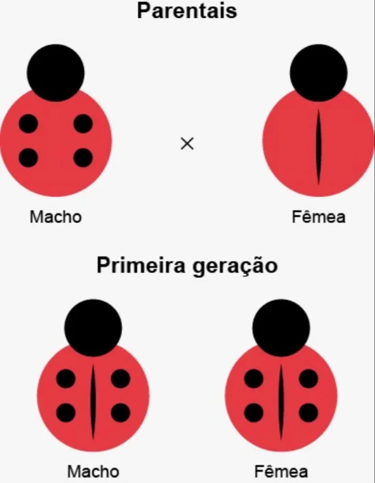 A figura apresenta a herança genética de uma característica a partir do cruzamento de insetos de uma mesma espécie.
