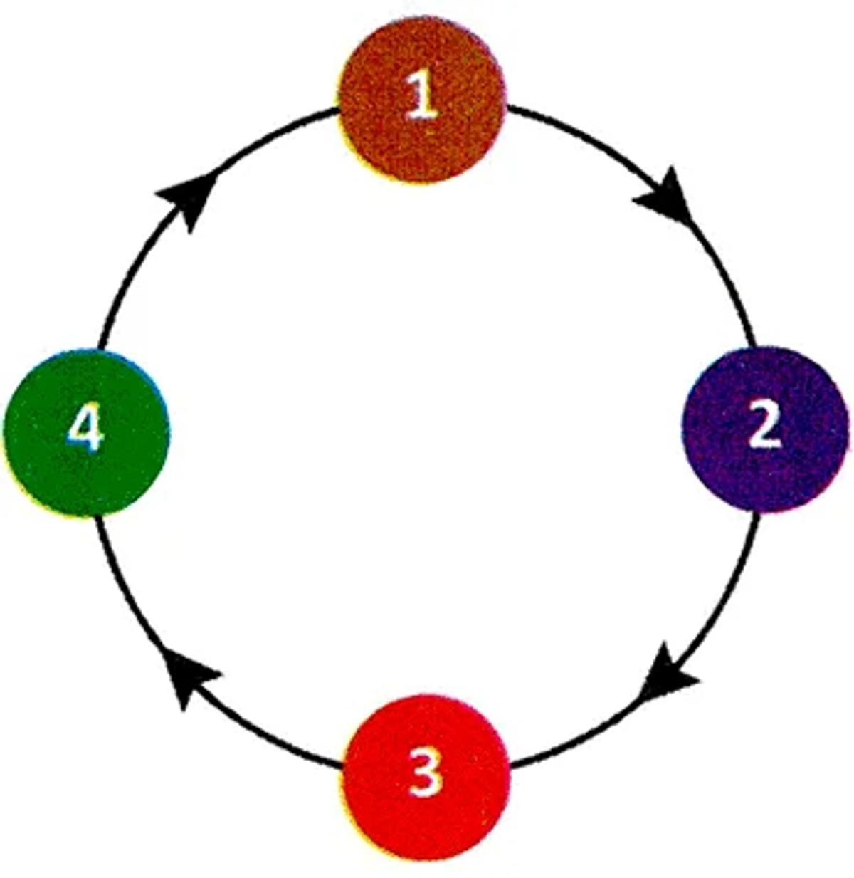 Quatro amigos, cada um com 100 moedas, criaram um jogo, no qual cada um assume uma das quatro posições, 1, 2, 3 ou 4, indicadas na figura, e nela permanece até o final.