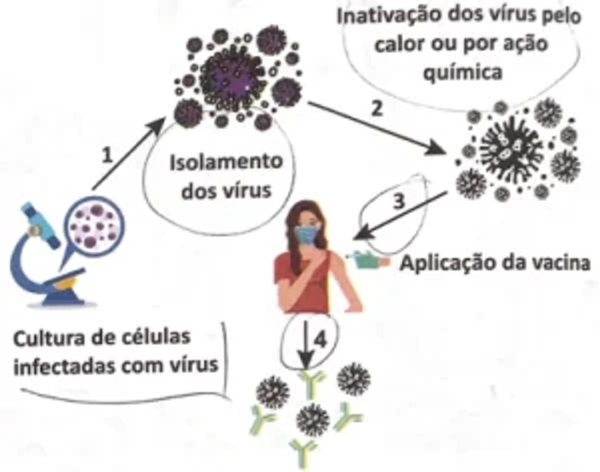 A produção de vacinas exige uma sequência de procedimentos, além do cumprimento estrito de verificações de segurança. No esquema, estão demonstradas as etapas básicas realizadas para a fabricação de uma vacina utilizando a tecnologia tradicional e o efeito dela no organismo.